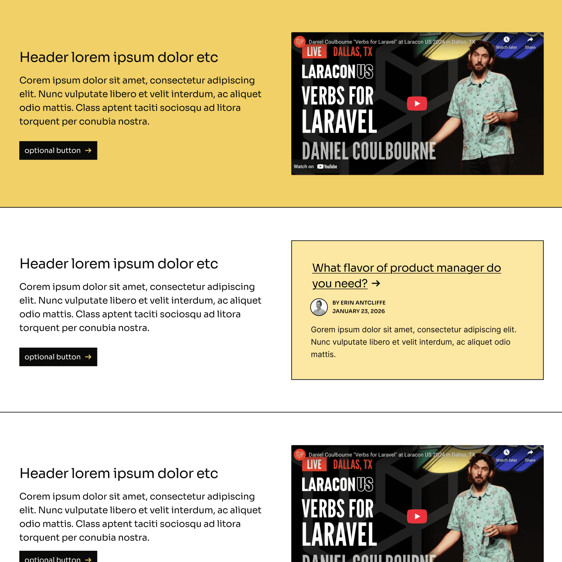 I also put together a toolkit that allows website admins the ability to assemble custom marketing pages with ease. With a variety of component designs and variations, any page can easily be built and customized to support a variety of needs.