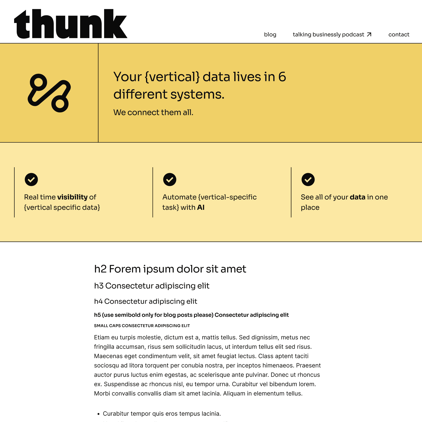 Thunk (a dev agency I enjoy collaborating with as a product designer) went through a recent rebrand and asked me if I would redesign their website to support this new phase of the company. Designer Lindsey Evans put together a super fresh new logo and brand direction, and I was thrilled to get to work with these new assets.