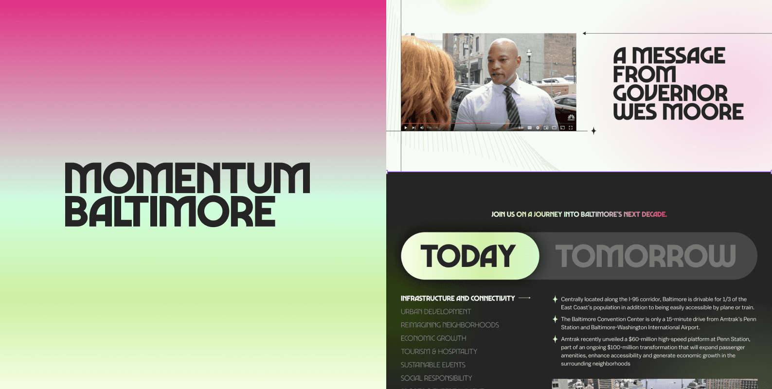 A landing page design that brings together Baltimore's past, present, and future.